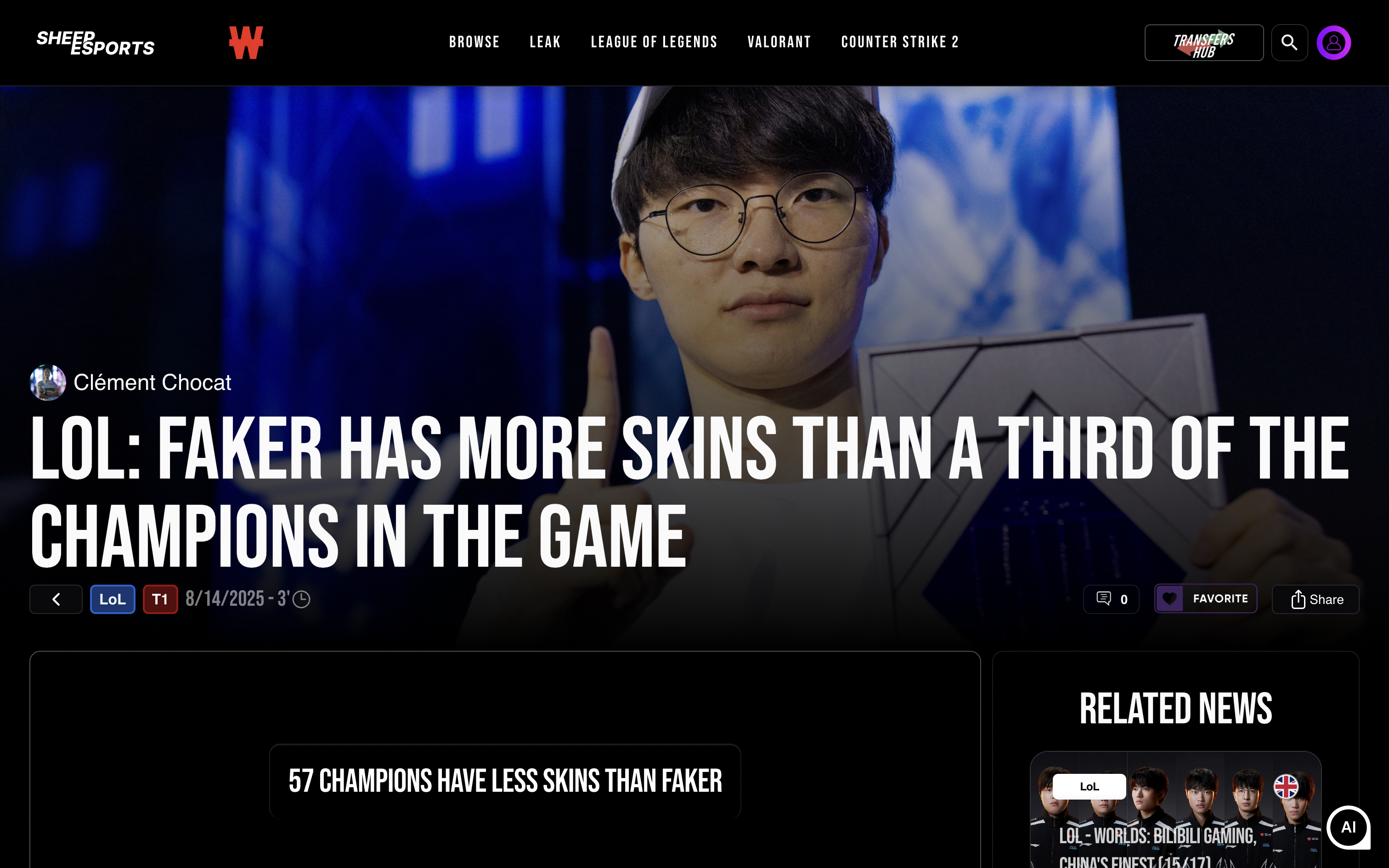 I built SheepEsports from the ground up, an esports news platform that now serves over 600k monthly active users. The platform delivers real-time gaming news, tournament coverage, and community engagement features.